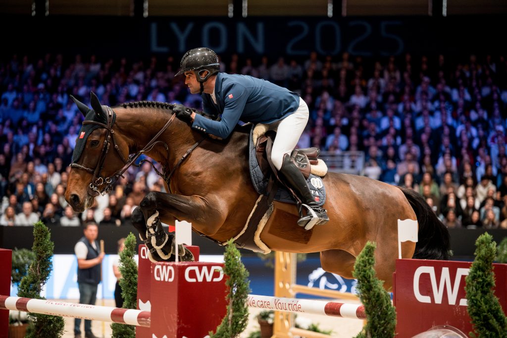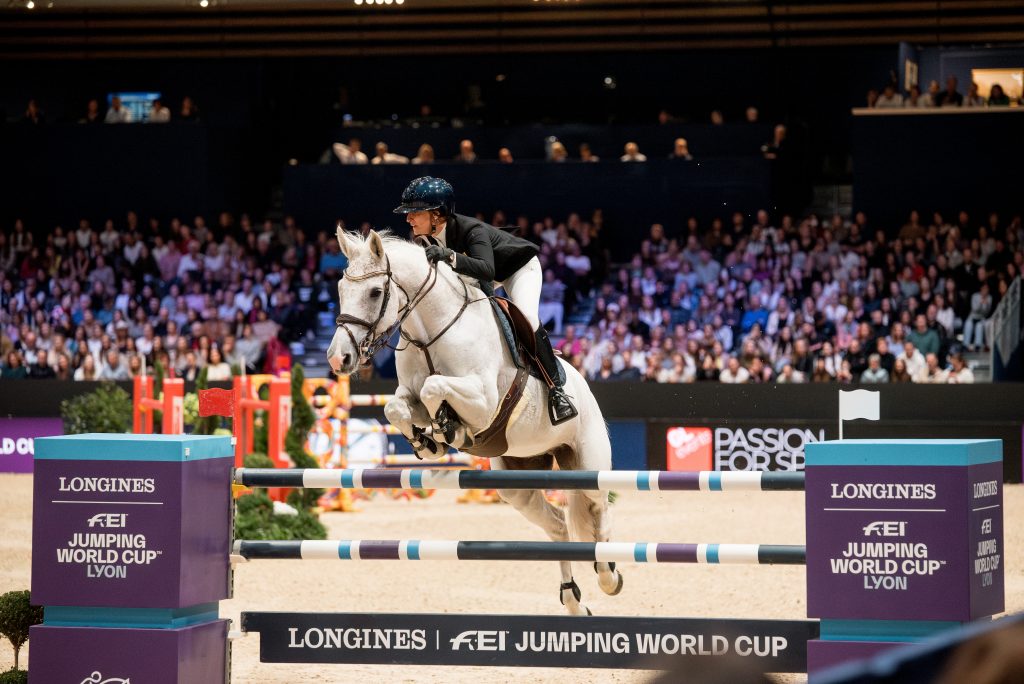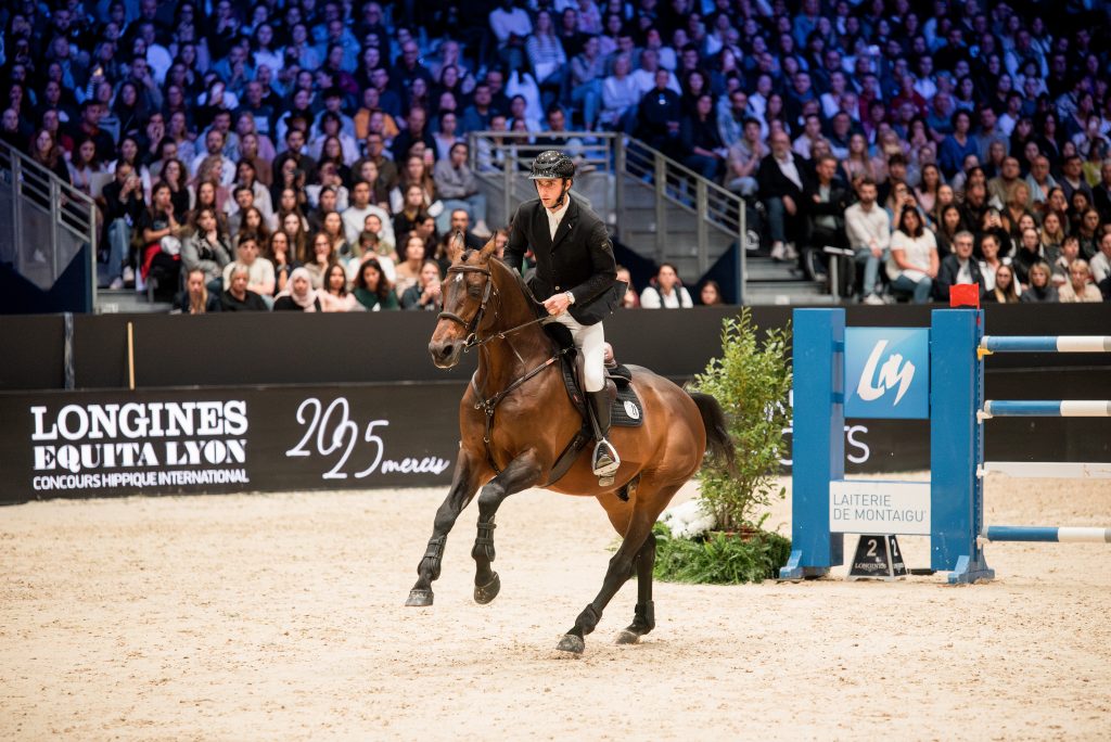 Quarante concurrents se sont affrontés sur un parcours en quatorze obstacles sur la grande piste du Longines Equita Lyon, habillée pour l’occasion par Grégory Bodo et son équipe. La difficulté de cette épreuve résultait notamment en son double de verticaux à une foulée en numéro 5 mais également la combinaison numéro 8, composé d’un oxer suivi d’un vertical en deux foulées puis d’un nouvel oxer très large en une foulée, qui a causé nombre de désillusion à nos couples. En effet quinze couples se seront cassés les dents sur un des éléments du triple dont Matias Larocca (Patron van de Dweerhoeve), Alexa Ferrer (Vitalhorse*Fleur d’Oz) qui essuiera un refus sur le dernier oxer, Sanne Thijssen et sa lauréate de l’étape Norvégienne Cupcake Z, Mégane Moissonnier (Crooner Tame) et Jeanne Sadran (Dexter de Kerglenn) qui renverseront le deuxième plan du troisième obstacle ou encore l’immanquable Ping Pong van de Lentamel piloté par Gerrit Nieberg. Le chronomètre aura également fait son lot de malheureux : Edouard Schmitz (Gamin van’t Naastveldhof), les lauréats de l’année passée Richard Vogel et United Touched S, Nathan Budd (Touardo Blue Z) ainsi que Robin Muhr (Galaxy HM) ont tous souffert d’un ou de plusieurs points de temps dépassés, leur fermant les portes du barrage.