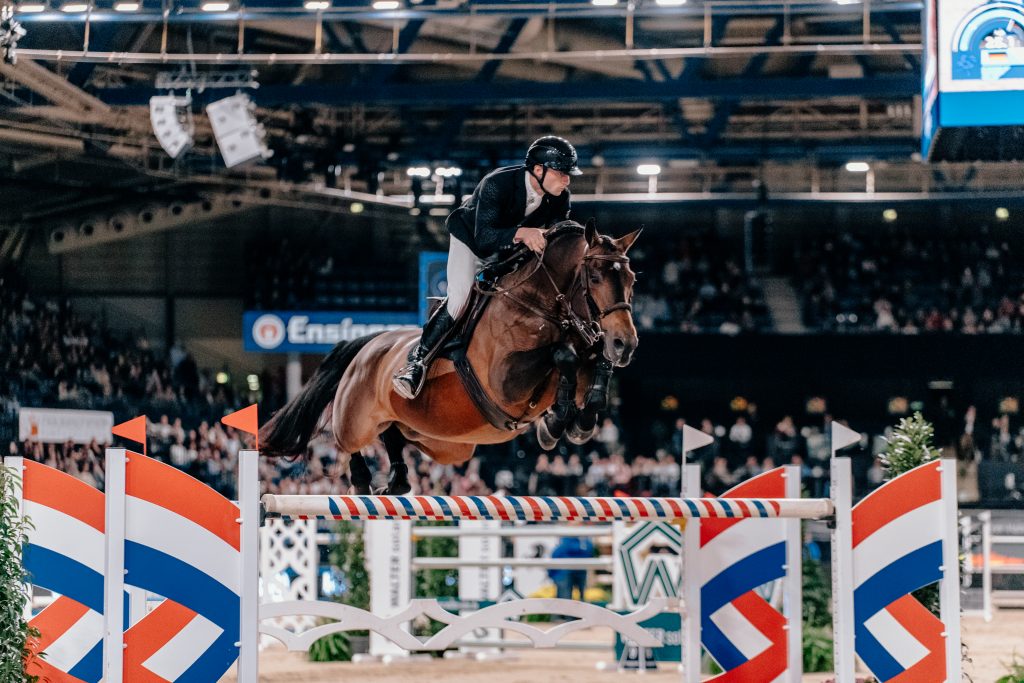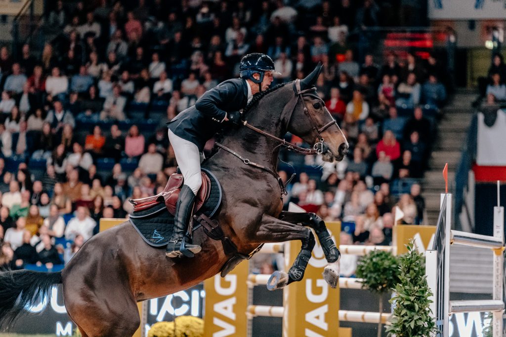 Grâce à elle, le Néerlandais est aussi devenu le premier représentant de sa nation à inscrire son nom sur le mur des vainqueurs après un barrage mené tambour battant. Mais pour faire partie des prétendants à la victoire, il fallait passer le cut d’une première manche au parcours savamment dosé par la cheffe de piste Christa Jung et son équipe. L’Allemande avait notamment mis sur pied trois combinaisons, deux doubles vertical-vertical et oxer-vertical, et un triple défendu par un vertical à palanque, un oxer et un vertical en sortie. Pour autant, si Piergiorgio Bucci (Hantano, KWPN, Quasimodo Z x Numero Uno), Carolina Rehoff Pederson (Golden Eye, Hann, Goldfever x Stakato Gold) ou encore Hans-Dieter Dreher (Elysium ex-Ziroquado T, Holst, Zirocco Blue VDL ex-Quamikase des Forêts x Coronado) s’y sont cassés les dents, les fautes ont été disséminés tout au long du parcours : l’oxer aux couleurs de l’événement a été fatal à Adrian Whiteway (Chacco Volo, OS, Chacco Blue x Carthago) et Bas Moerings (Ipsthar, KWPN, Denzel Vt Meulenhof x Farmer), Jos Verlooy (Parise van den Dael, BWP, Zazu ex I’m Moerhoeve’s Star x For Passion d’Ive Z) et Jason Smith (Picobello van’t Roosakker, BWP, Kassander van’t Roosakker x Canabis Z) ont laissé à terre un oxer vert placé en numéro 10, tandis qu’un refus sur le mur de Chacco’s Lando OL (OS, Chacco Blue x Lando) a poussé Niels Bruyneels à l’abandon.